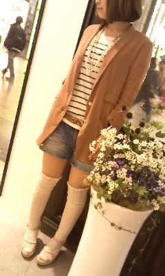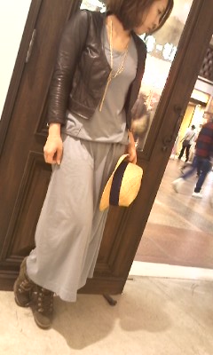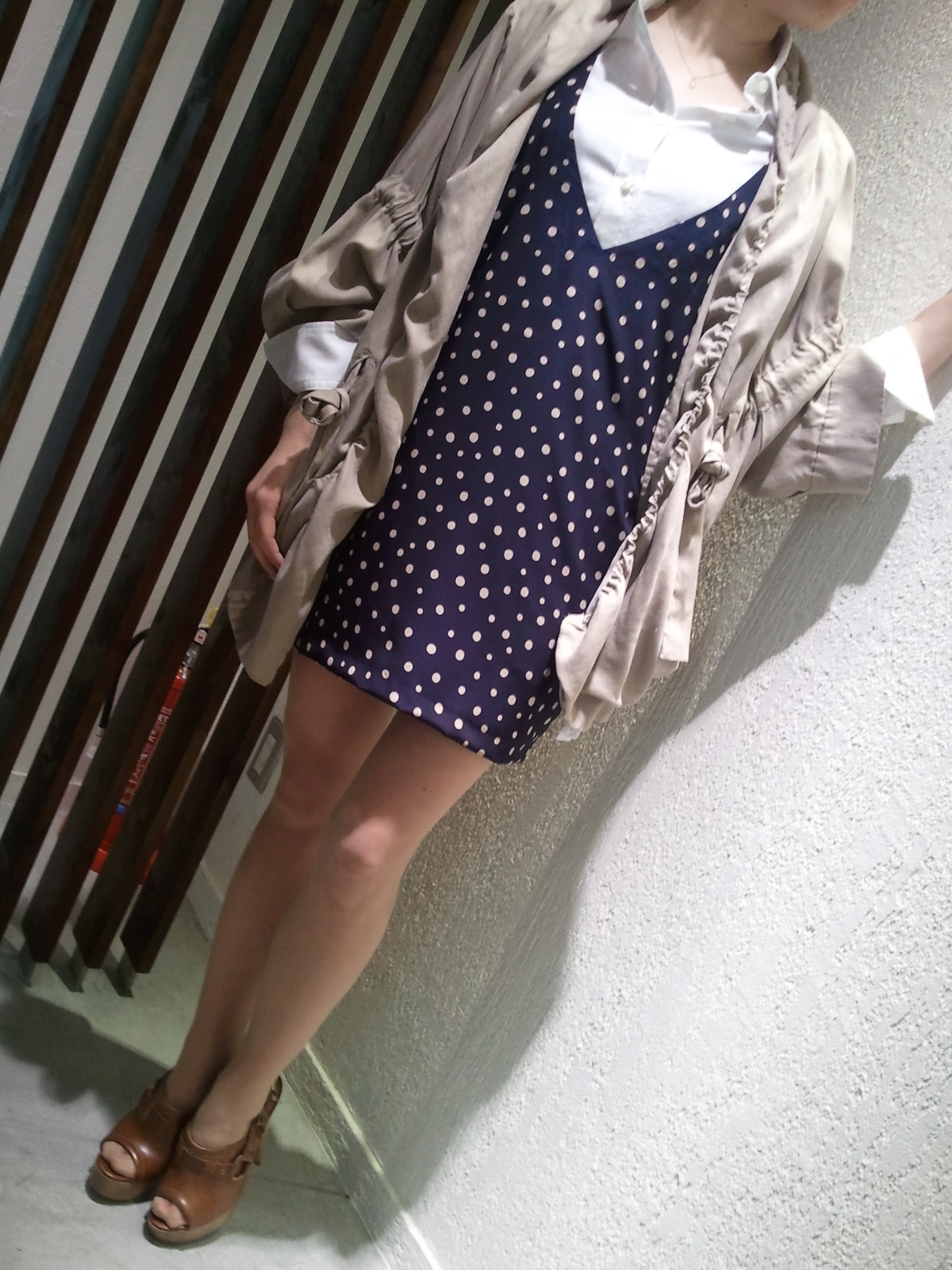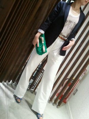大人っぽく、ベージュのチノパンとのコディネート・・・